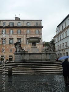 The Quattro Fontane (the Four Fountains) is a group of four Late Renaissance fountains that represent the River Tiber (the symbol of Rome); the River Arno the symbol of Florence; the Goddess Diana; the symbol of Chastity; and the Goddess Juno, the symbol of Strength.