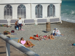 J and I were scouting for topless sunbathers and indeed we spotted quite a few daring babes on the beach.